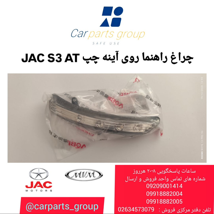 چراغ راهنما روی آینه چپ اصلی خودرو جک اس ۳ اتومات ـ JAC S3 AT