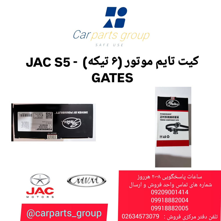 کیت تایم موتور (۶تکه) جک اس۵ اصلی برند گیتس Gates Power Grip_ JAC S5